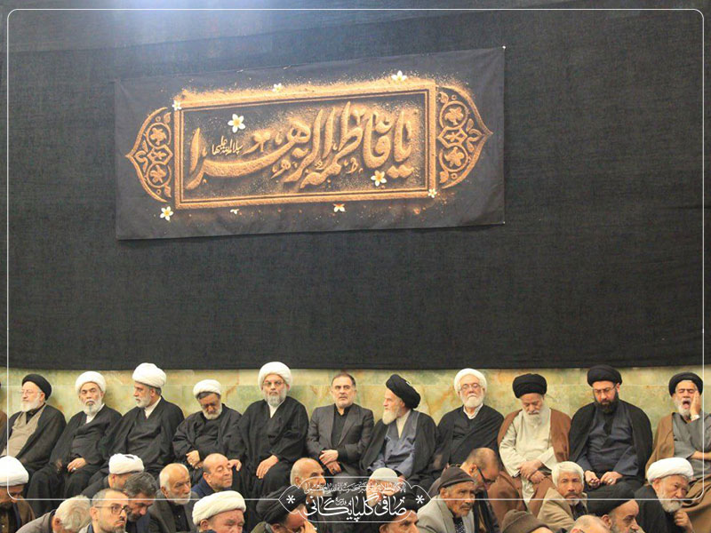 به جهت عرض تسلیت به ساحت مقدس حضرت بقیه الله الاعظم ارواح العالمین له الفداء مجلس عزاداری شهادت حضرت صدیقه طاهره سلام الله علیها (فاطمیه دوم) با حضور علما و شیفتگان اهل بیت عصمت و طهارت علیهم السلام در حسینیه آیت الله العظمی صافی گلپایگانی قدس سره برگزار گردید.